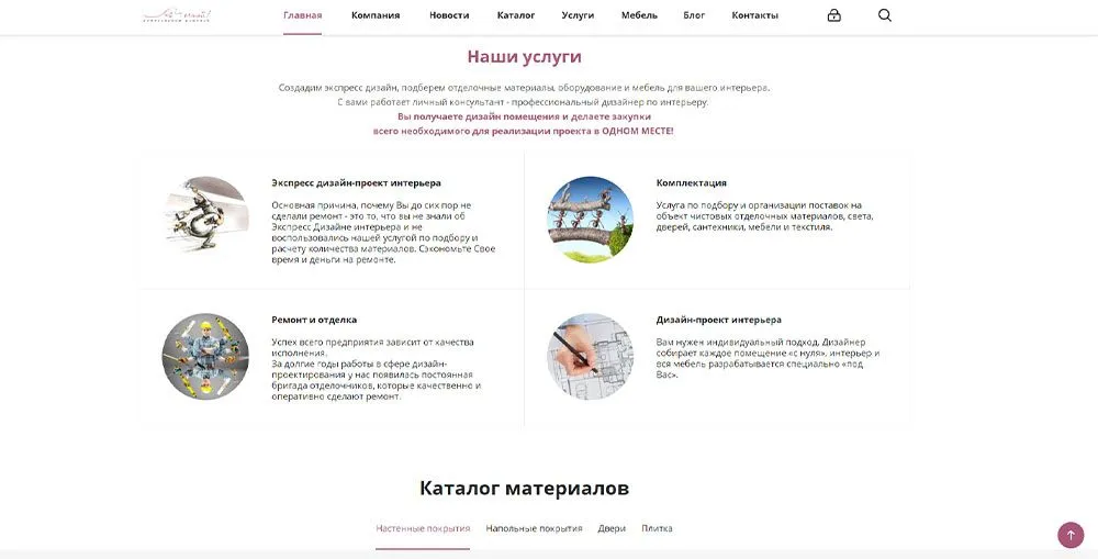 • Разработка индивидуального дизайна всех страниц сайта