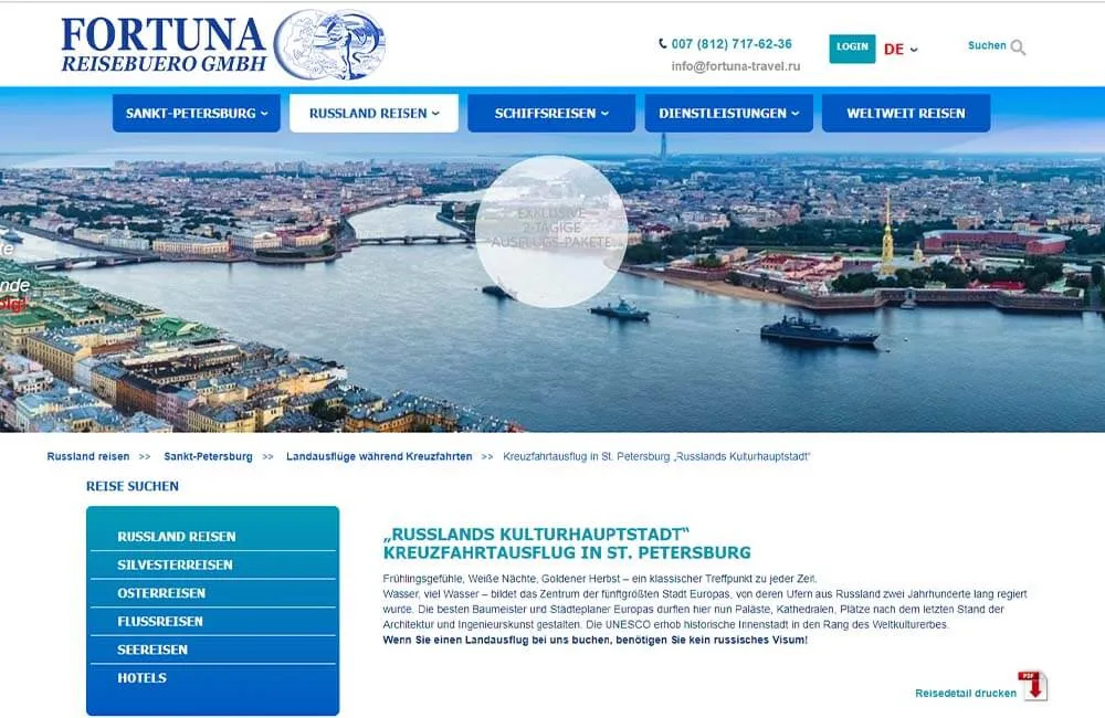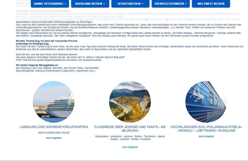 - Программирование: подбор тура, выбор круиза, слайдер на главной, карусель, форм получения заявок, подключение агрегатора отелей и гостиниц "Островок", вывод на печать страницы и многое другое.